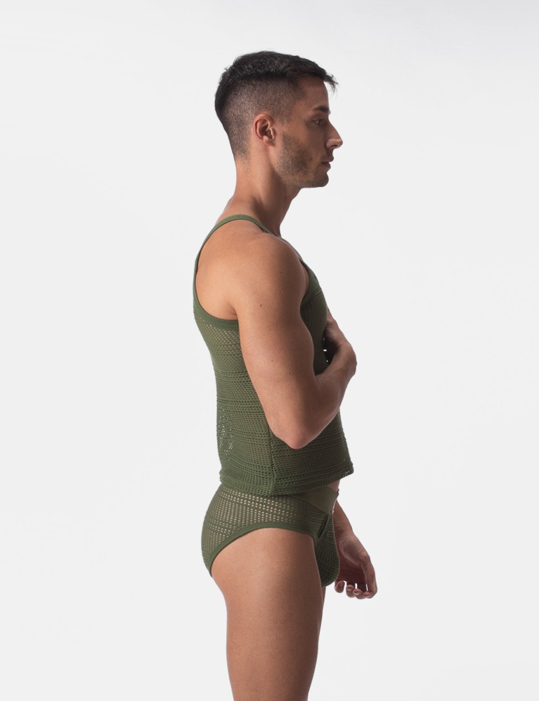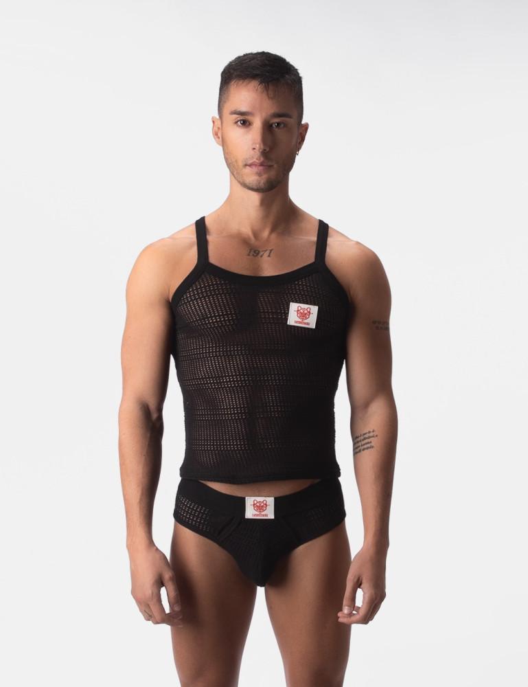 Parte superioară subțire cu bretele subțiri realizate din plasă semi-traversă.