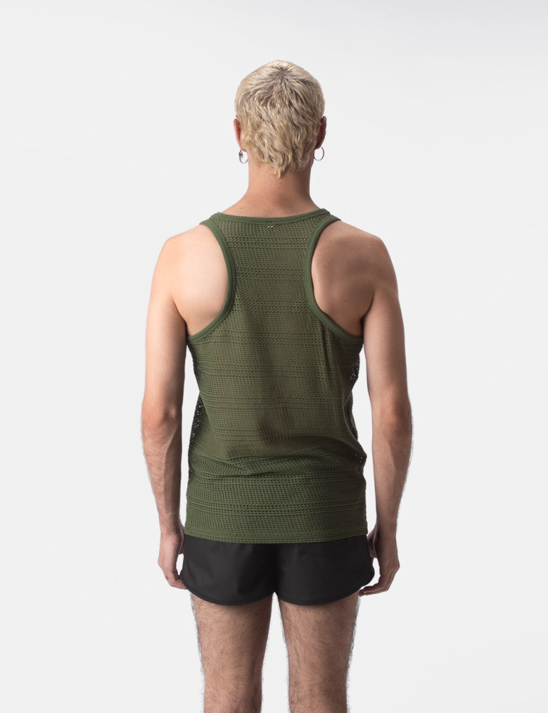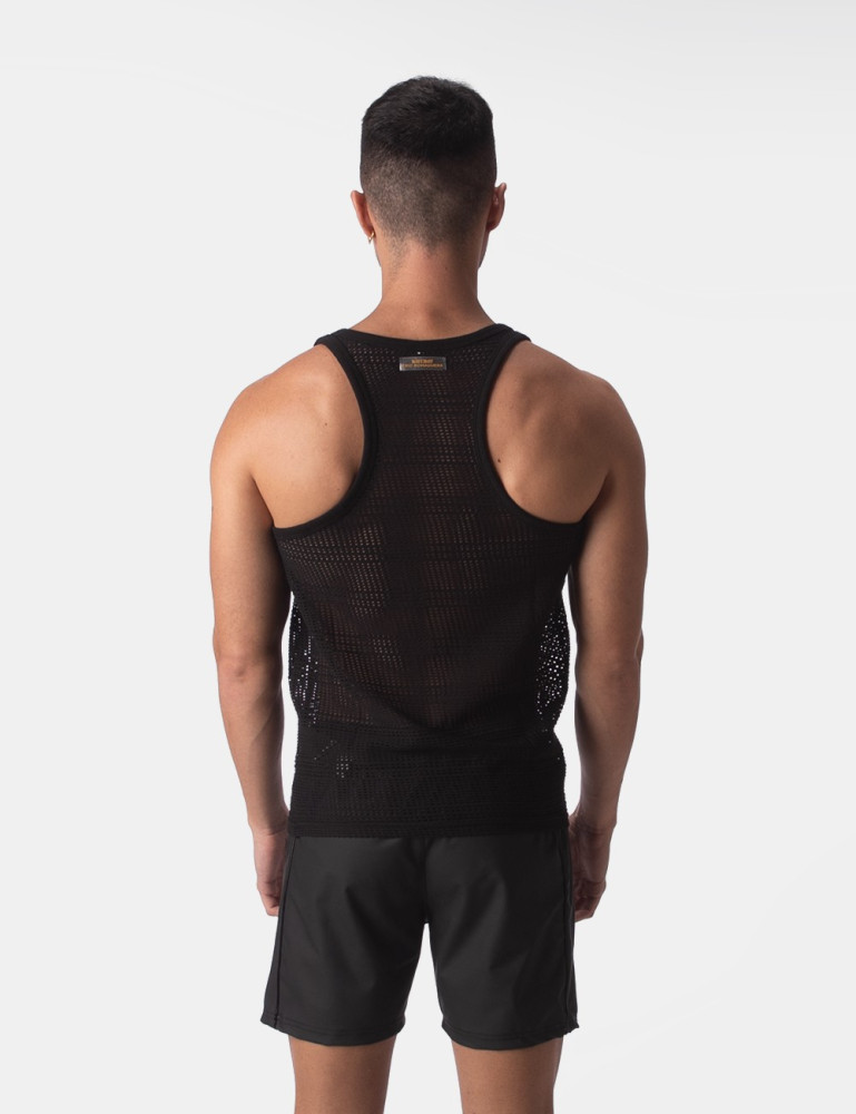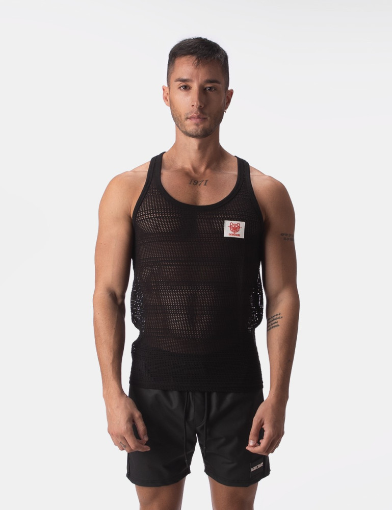 Maiou făcut dintr-o plasă subțire, semi-traversată. Logo din silicon pe piept.