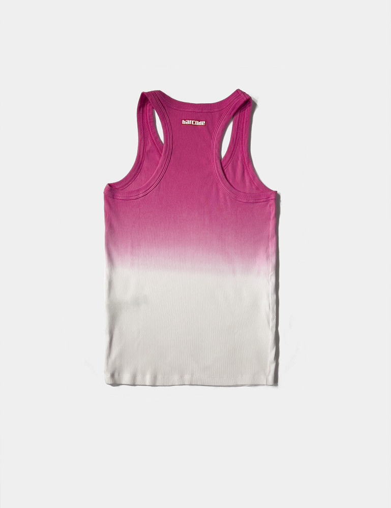 Acest maiou cu un decolteu aprins are un stil mulat care evidențiază fizicul purtătorului. Materialul trece fără cusur de la o nuanță la alta, creând un efect degradant care adaugă un aspect vizual dinamic. Partea superioară este realizată dintr-un material elastic confortabil, cu nervuri, ideal pentru purtarea zilnică sau antrenament.