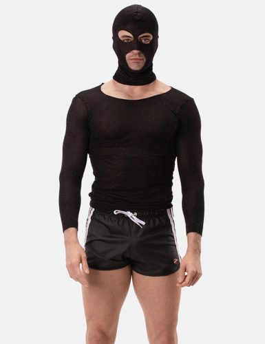 Această mască este realizată din material lurex elastic, care conferă designului său un efect