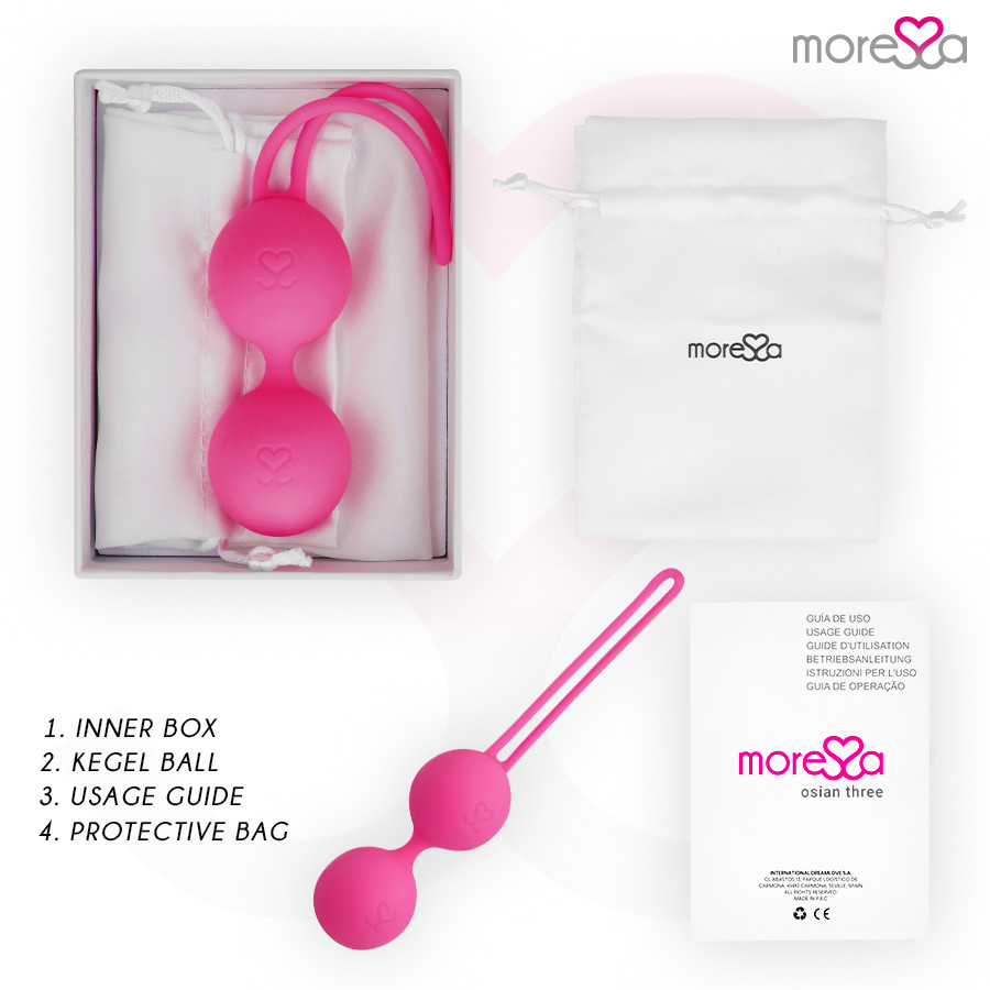 A Moressa OSIAN kínai golyók 100%-ban magas minőségű sziliónnal vannak borítva. Három színben elegáns dizájnjuk van, valamint páratlan, puha és nagyon kényelmes bársonyos érintésük.