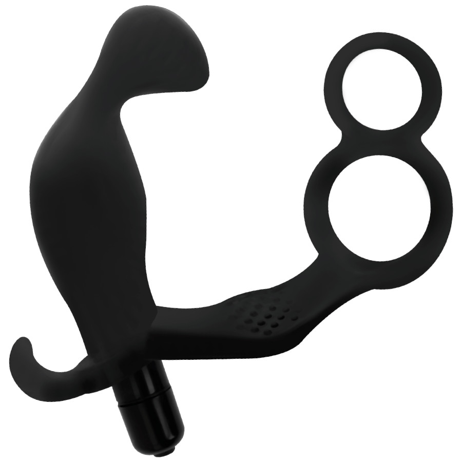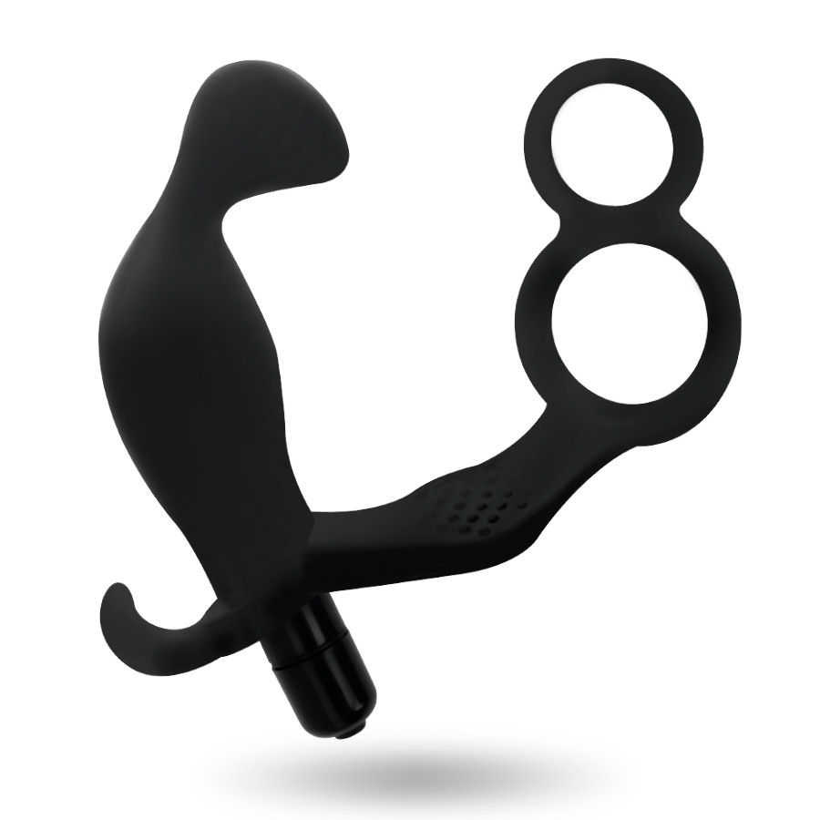 ADDICTED TOYS - ANÁLIS DUGÓ DUPLA PÉNISZGYŰRŰVEL ÉS HERÉKKEL FEKETE