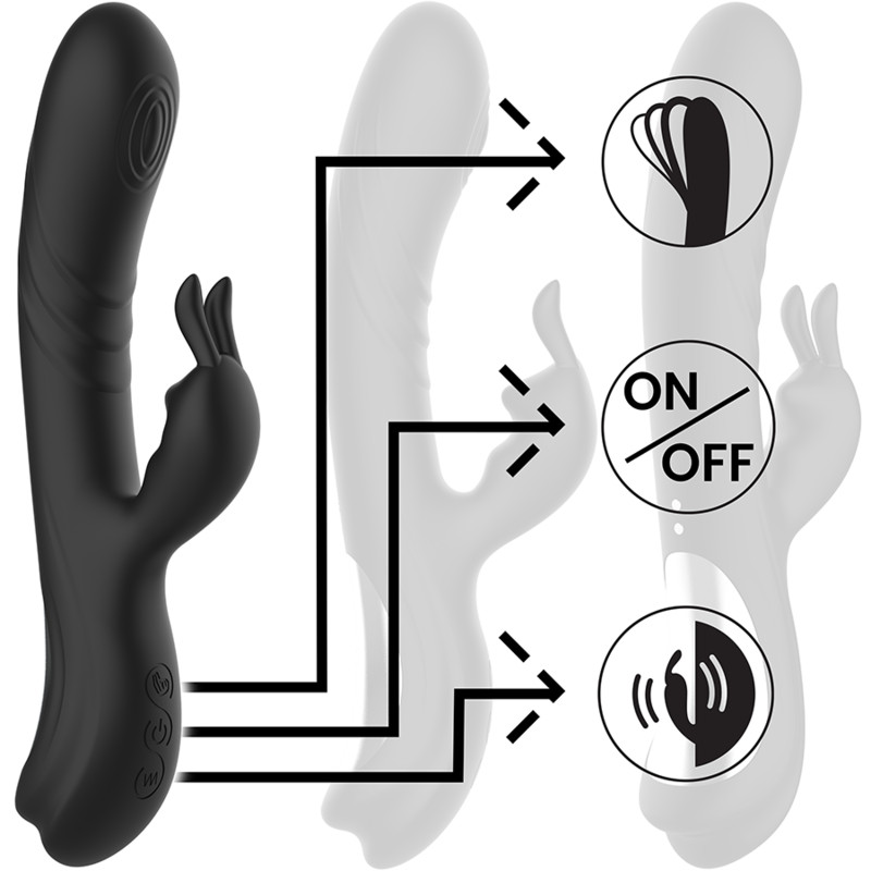 BLACK&SILVER - JAMIE ÚJRATÖLTHETŐ SZILIKON NYÚL STIMULÁTOR FEKETE