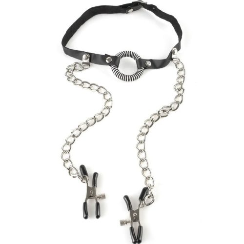 MEGJEGYZÉS: A Gag O-Ring és a mellbimbós bilincsek nem tartalmazzák a doboz fotóján látható nyitott rögzítőt. Csak a gyűrűvel ellátott geket és a mellbimbós láncot kapod meg.
