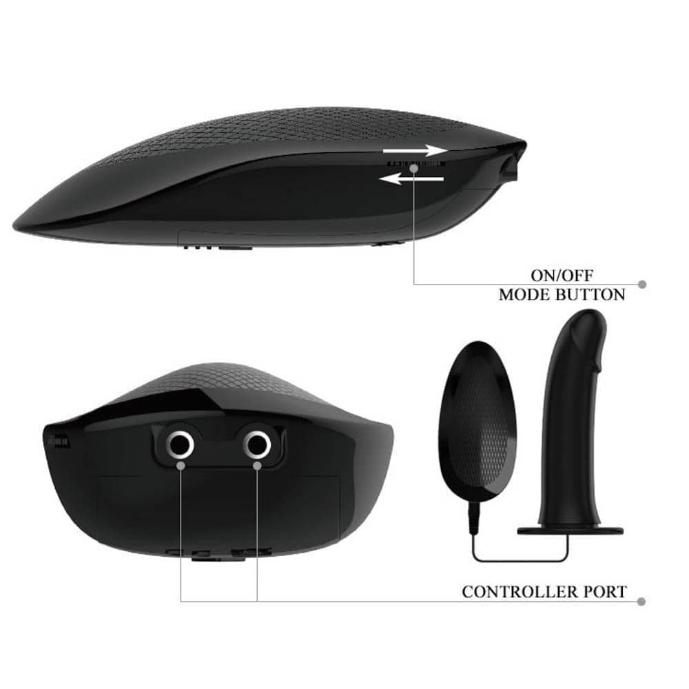Kiváló minőségű anyagból készített, rugalmas, erezett felületű felvehető, távirányítós, vibrációs motorral ellátott dildó, állítható hevederrel. A vibráció segítségével az élmény jelentősen fokozható.