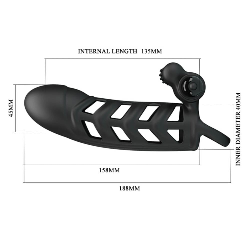 A pénisz egészét befedő, óvszerhez hasonló módon felhelyezhető, 10 rezgési fokozattal rendelkező, csiklóizgatóval kiegészített péniszköpeny, heregyűrűvel. Külső kialakítása a partner számára izgató hatású.