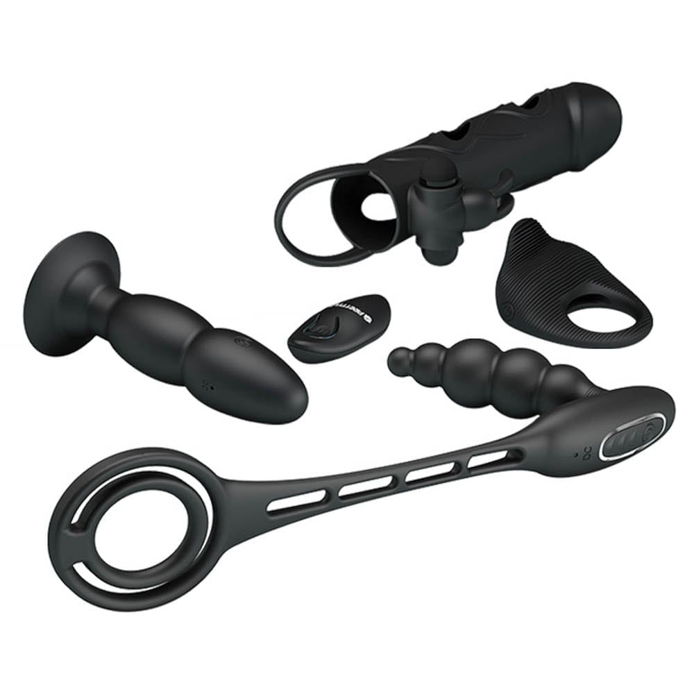 Tartalma : egy 13,5 cm hosszú, 3,7 cm átmérőjű, vezeték nélküli távrányítóval is szabályozható, 4 rezgési és 4 forgási funkcióval rendelkező fenékdugó, egy állítható rezgéserősségű, 14 cm hosszú, 3,3 cm átmérőjű, csiklóizgatóval kiegészített péniszköpeny, egy állítható rezgéserősségű, 5,6 cm hosszú, 5 cm átmérőjű péniszgyűrű és egy péniszgyűrűvel kiegészített, 21,2 cm hosszú (behelyezhető hossz 8,8 cm), 2,5 cm átmérőjű, vibrátoros prosztata masszírozó.