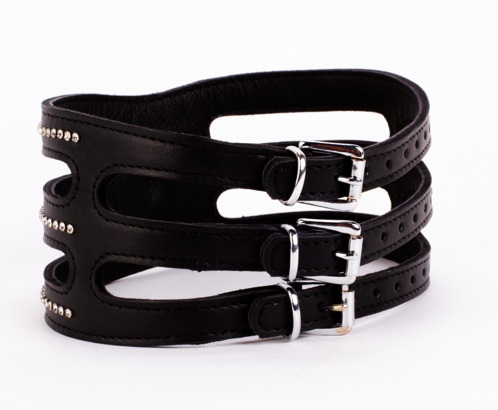 Guler Designer Traingo realizat din piele moale pentru gambe, negru