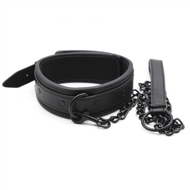 Fedezd fel a sötétség vonzerejét ezzel a stílusos, fekete nyakörvvel, melyhez egy elegáns fém póráz tartozik! 48 cm hosszú és 4,5 cm széles, puha, párnázott belső résszel a maximális kényelemért. Ideális választás a prémium intim pillanatokhoz!