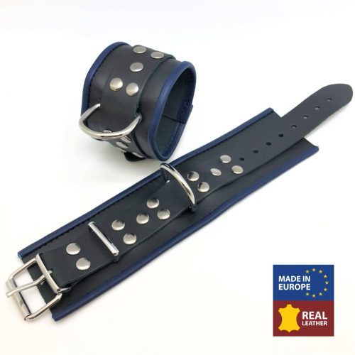 Bőr bilincs – fekete/kék, érzéki kötözéshez