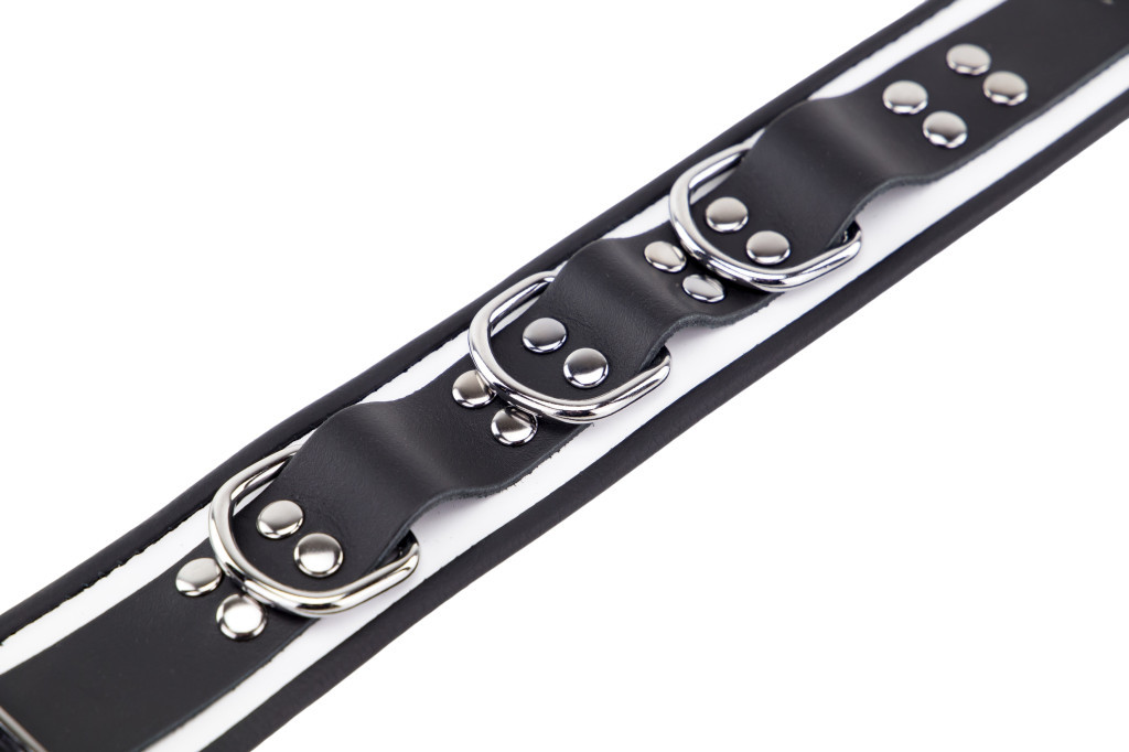 Bőr nyaklánc 3 gyűrűvel – fehér-fekete elegancia