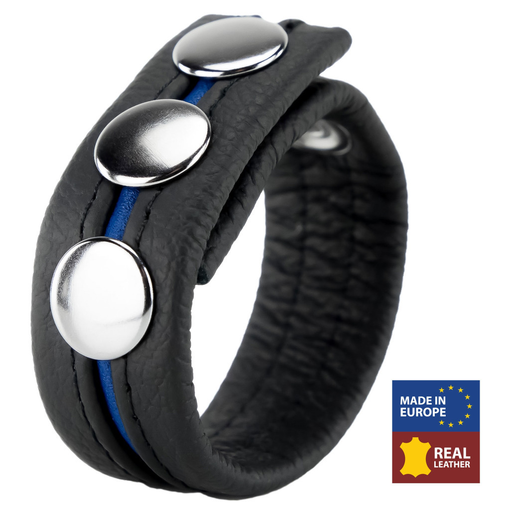 Tapasztald meg a különleges érzéseket a Leather Cockring™ 3 Pressures Black-Blue segítségével!