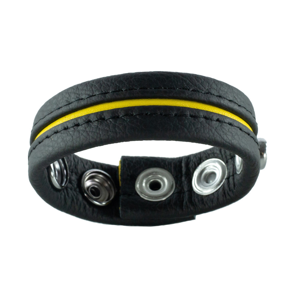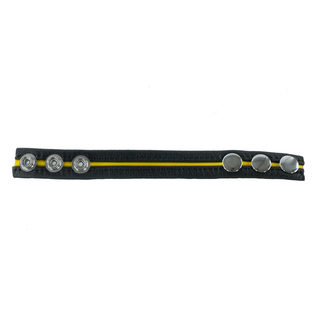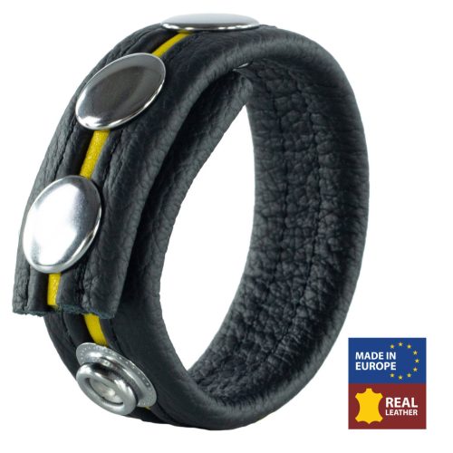Prémium bőr péniszgyűrű – háromfokozatú zárás, fekete-sárga