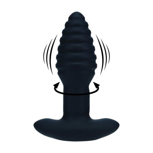 Szilikon bordázott anál dildó fekete vibrációval és forgással