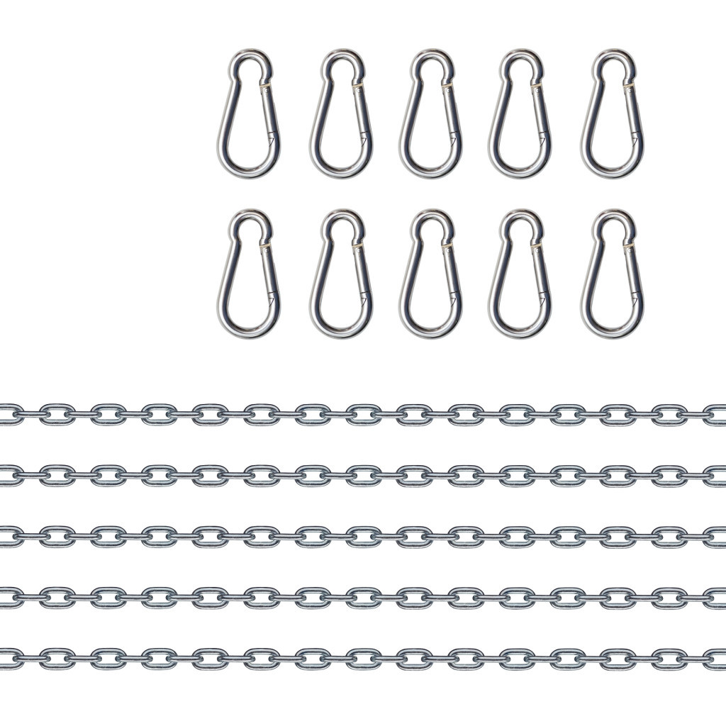 5 db lánc és 10 fém karabiner készlet