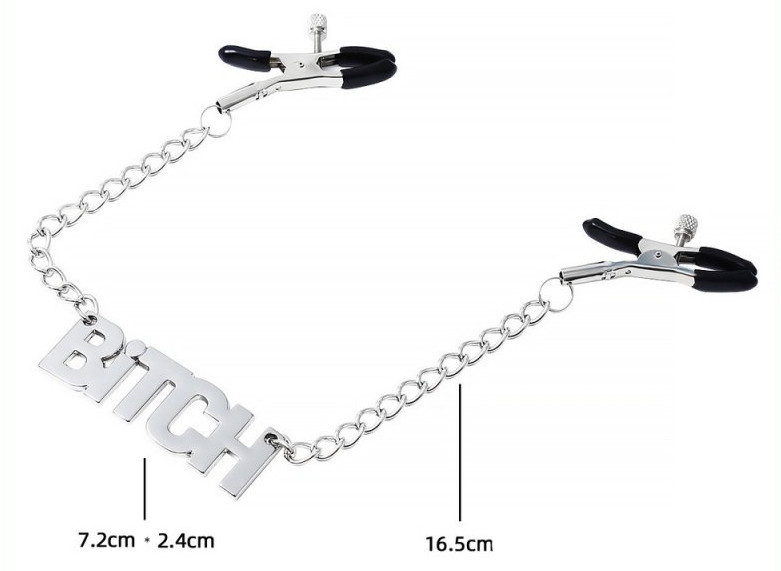 Fedezd fel a határok nélküli intimitás új dimenzióját! Ezek a prémium, állítható mellbimbócsipeszek eleganciával és szenvedéllyel hirdetik a dominancia és az alávetettség izgalmas játékát. A fémes csillogás és a "Bitch" felirat minden érintésben érezteti a vágyat – tapasztald meg, hogyan feszíti a határaidat! 40 cm-es hosszával mindkét fél számára felejthetetlen élményt nyújt. Válassz bátran, és élvezd az új kalandokat!