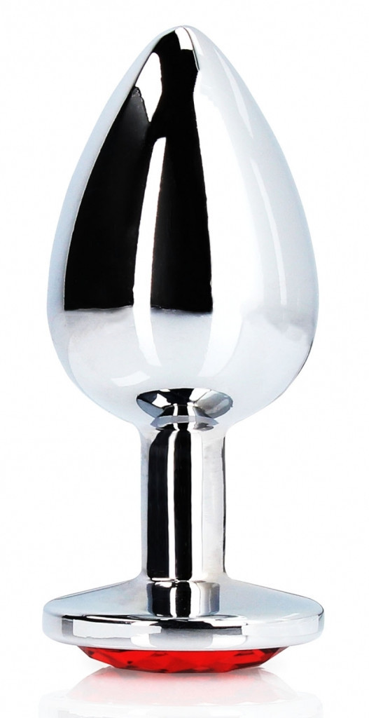 Bijou – ezüst-piros kerek anális gyöngy 8 x 4 cm