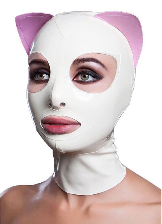Cagoule Cat – fehér macska maszk, érzéki fétis stílusban