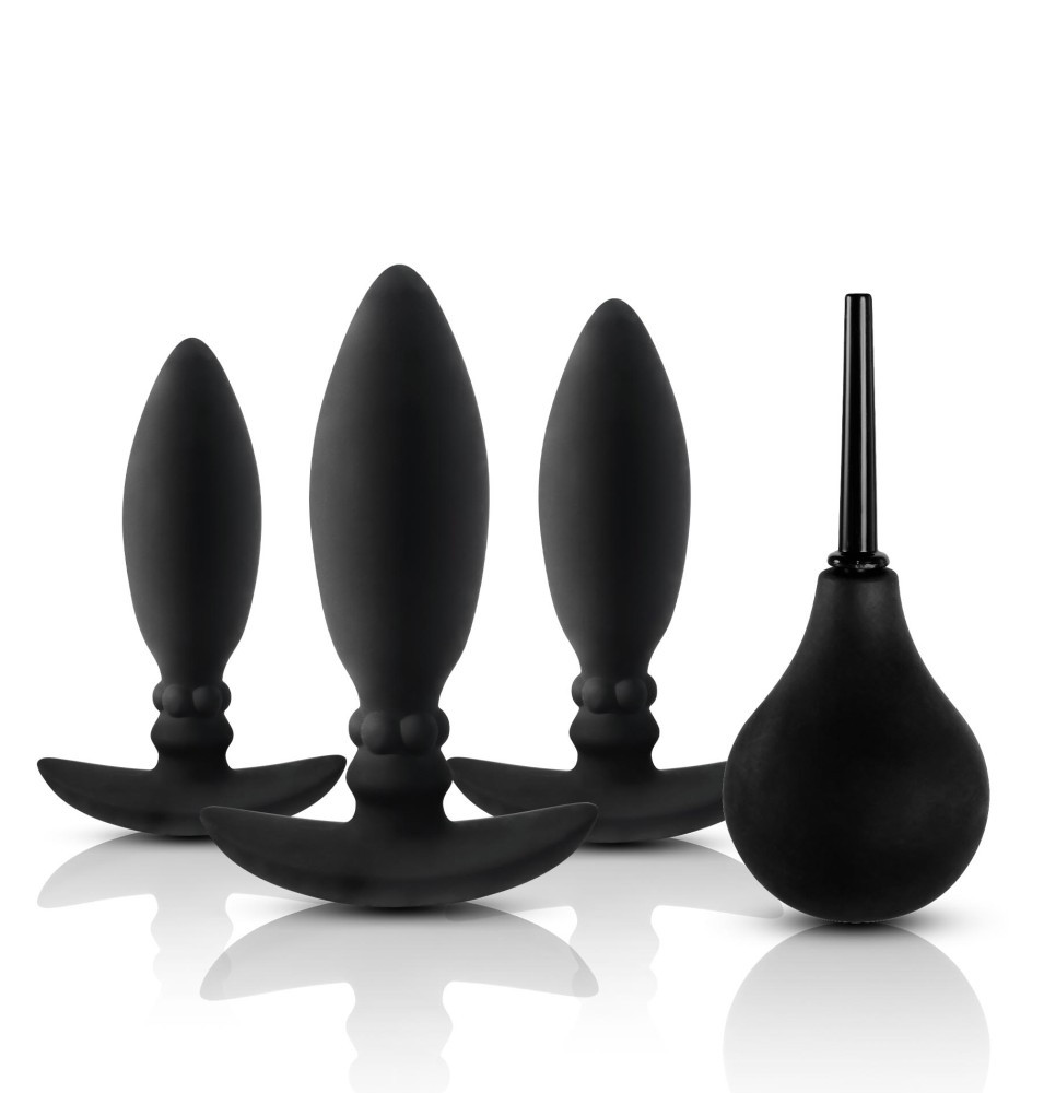 A szett tartalma egy 8 cm hosszú, 2,5 cm átmérőjű, egy 10 cm hosszú, 3,3 cm átmérőjű és egy 12,5 cm hosszú, 3,8 cm átmérőjű fenékdugó, és egy 6 cm behelyezhető hosszúságú intimzuhany, amelyeket kezdők számára is javasolnak.