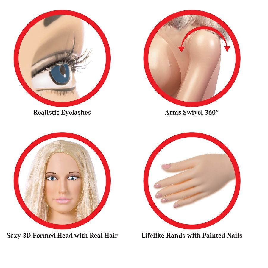 Ez a hihetetlen, felfújható, életnagyságú baba aprólékosan készült, valósághű elemekkel egy igazán élethű élmény érdekében. Vonzó, 3D-s formázott arcát egy luxus hajszál egészíti ki, amely alig várja, hogy hátrahúzzák. A feszes melleivel élvezheted a szuperpuha és valódi mellbimbóit. A hüvelyje és a feneke szoros és nagyon valósághű
